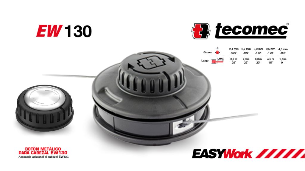 Los cabezales automáticos y semiautomáticos TECOMEC permiten liberar el hilo con el sistema “Tap & Go”, pero algunos modelos incluyen funciones adicionales como el botón giratorio metálico (Easy Work) o recarga rápida sin abrir el cabezal, lo que optimiza aún más el tiempo de trabajo.