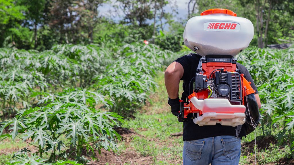 El modelo DM-6120 incorpora un potente motor ECHO de 2 tiempos, diseñado para resistir largas jornadas de trabajo y el uso intensivo de productos químicos. Este equipo cuenta con 6 niveles de caudal regulable, lo que permite ajustar la aplicación según el tipo de cultivo o la densidad del producto que se requiera, ya que en el agró no solo cuenta aplicar un producto en altura o a una distancia determinada, sino que este debe aplicarse de forma correcta para que la planta pueda absorverlo y evitan que en producto caiga al piso, lo que representa un desperdicio y que la aplicación sea incorrecta.