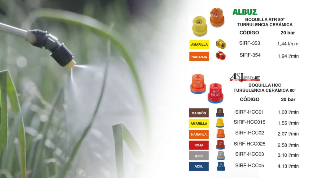 Estos accesorios permiten ajustar la presión, el tipo de gota (fina, gruesa o en forma de niebla) y el patrón de aplicación (cono, abanico o chorro directo), lo que garantiza un mejor control, ahorro de producto y mayor cobertura en cada aplicación