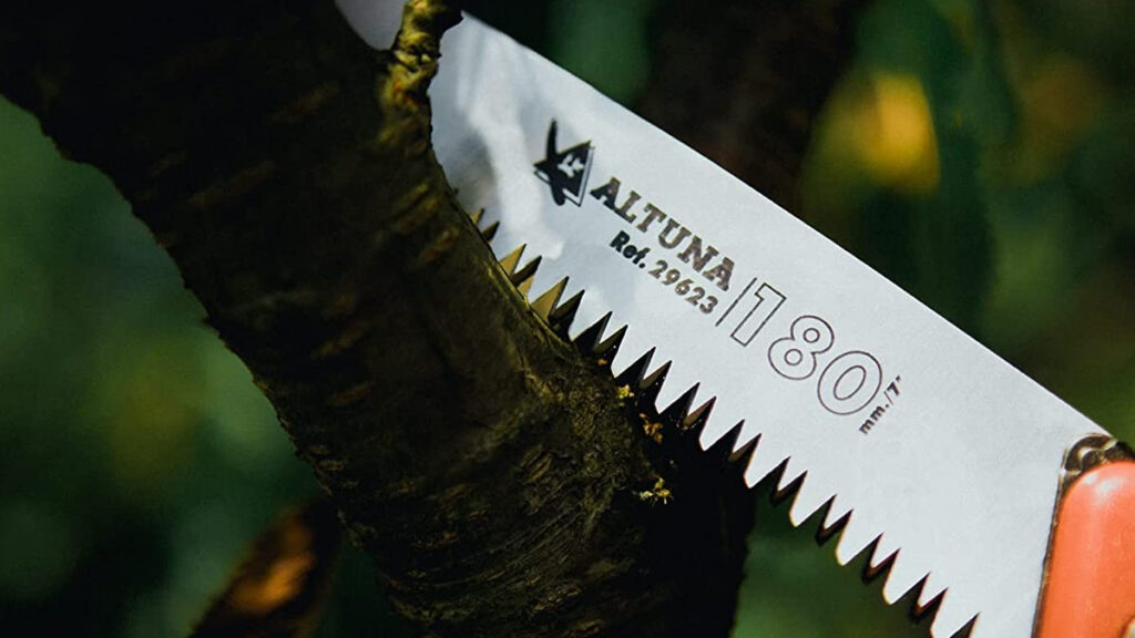 El diseño y la disposición de los dientes del serrucho en ángulos permite un corte fino y sin desgarros en la madera, lo que ayuda a la rápida cicatrización de la planta y reduce el riesgo de infecciones y enfermedades.