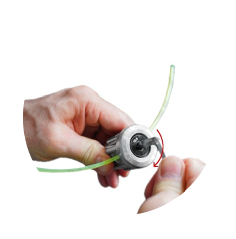 • Sus líneas de nylon se ajustan en su base con una llave allen suministrada con cada cabezal.